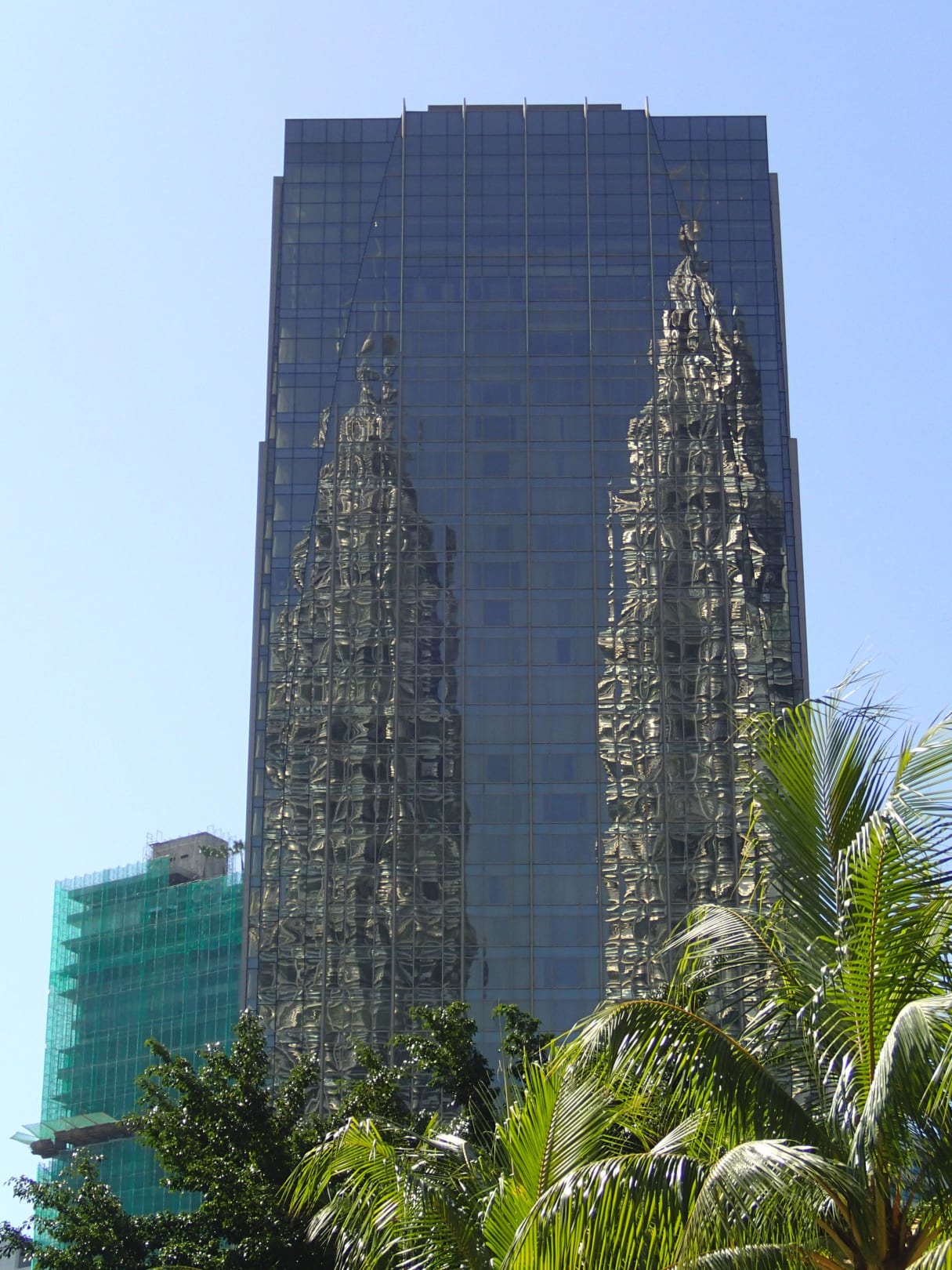 Spiegelung der Twins auf der Poolterrasse