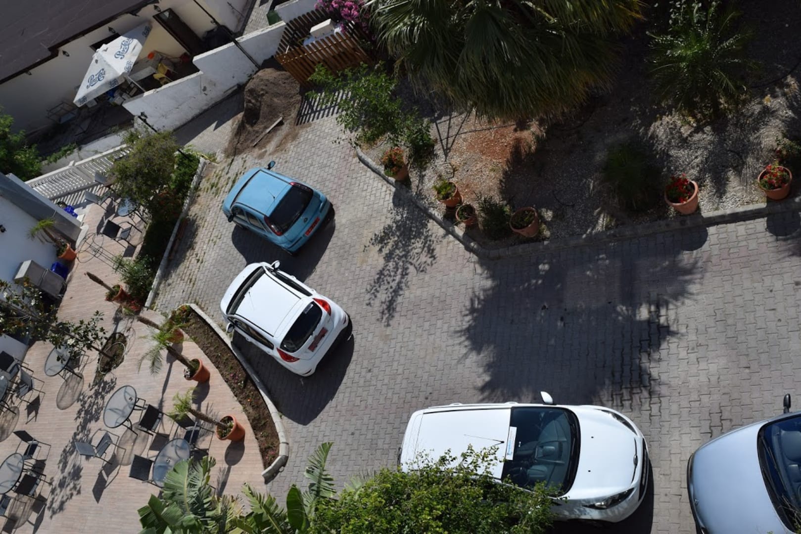 Ausblick vom Fenster unseres Zimmers auf den Parkplatz...