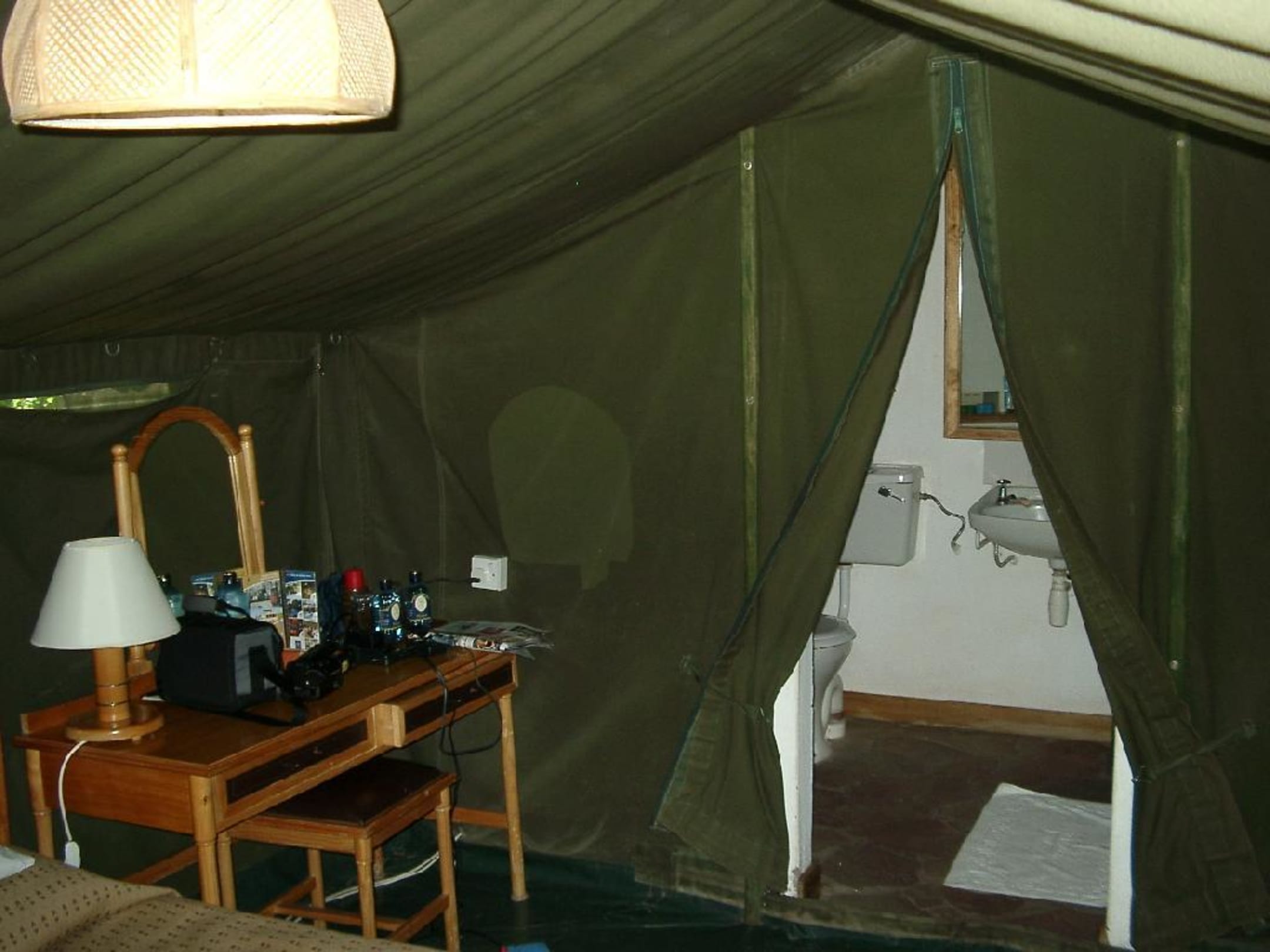 Blick ins Zelt-BadJedes Zelt hat wirklich sein eigenes Badezimmer mit Dusche, WC und Waschbecken.