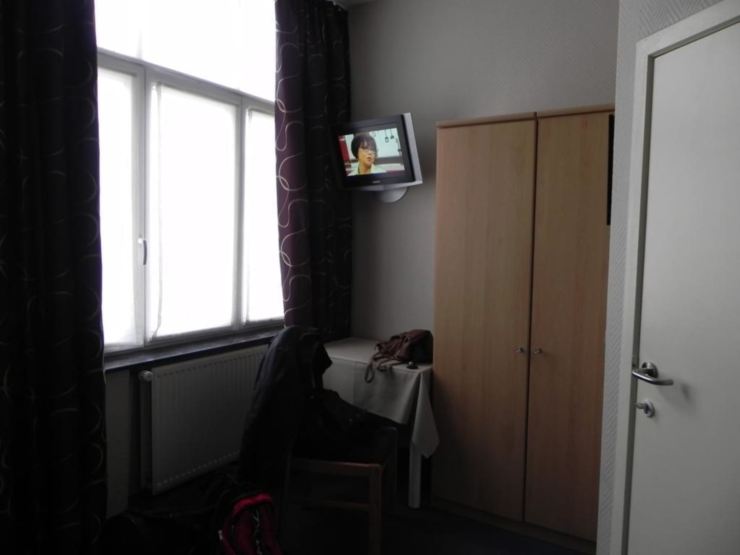 Zimmereingang, Kleiderschrank und TV