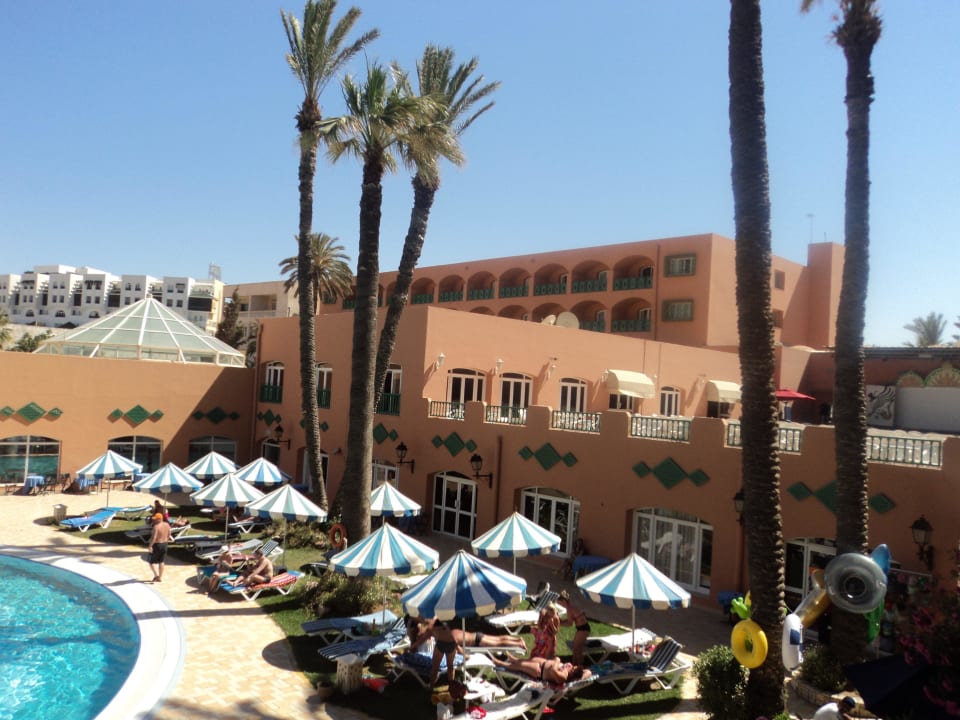 Aussicht aus dem Zimmer auf den Pool.