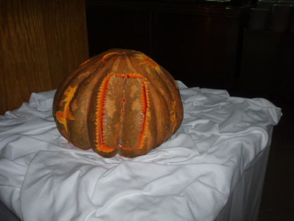 Dies ist ein beleuchteter Kürbis - leider etwas schlecht zu erkennen.