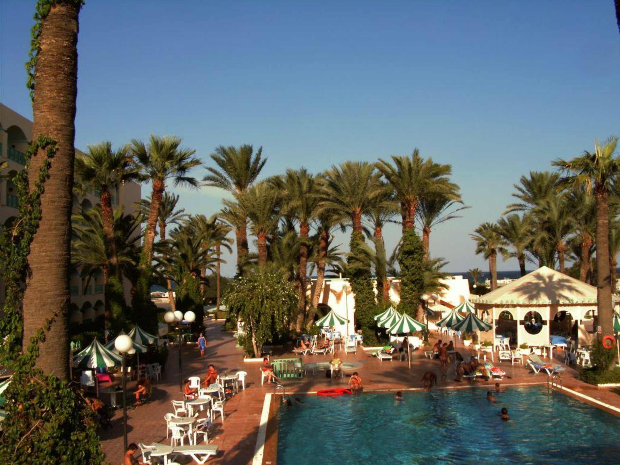 Blick von der Terrasse über den Pool