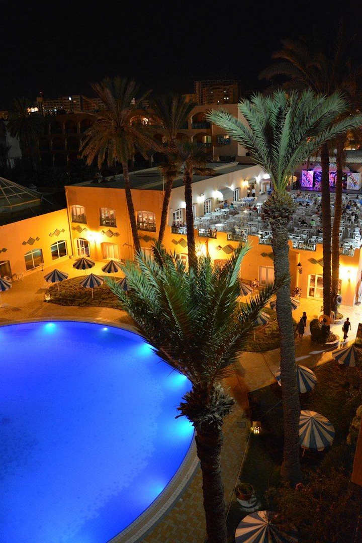 Basen wieczorem i miejsce Show Time.