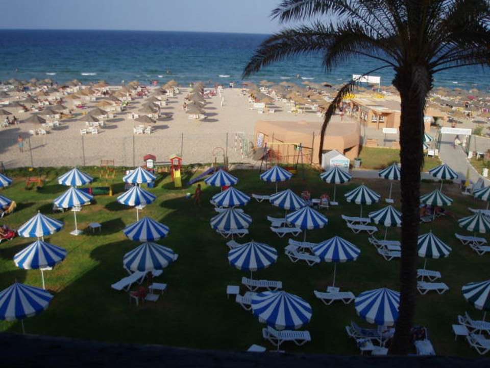 Diese aufnahme entstand von unserem Balkon aus. Im vorderen Bereich die Liegewiese, noch in der Hotelanlage, dahinter - durch einen Zaun getrennt - ist der Hotelstrand. Dieser war sehr sauber.