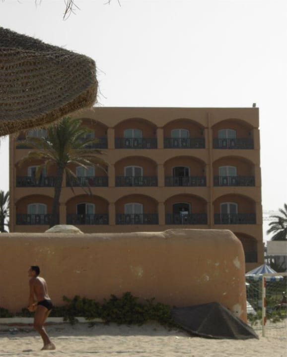 Blick vom Strand auf das Hotel