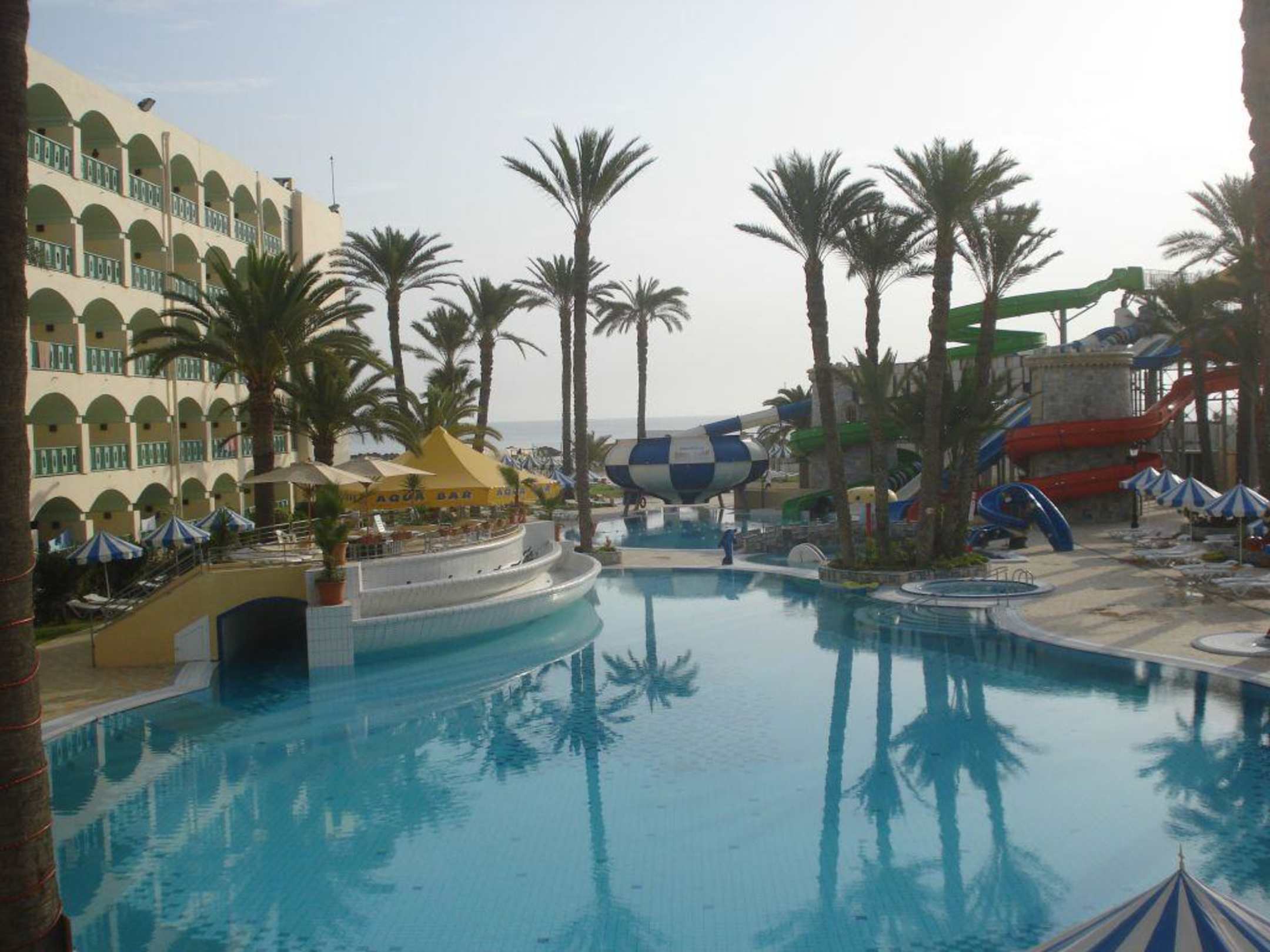 Blick auf den Pool vom Hotel Marabout.