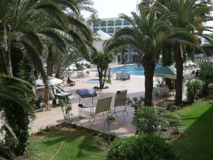 Blick vom Balkon in Richtung Pool