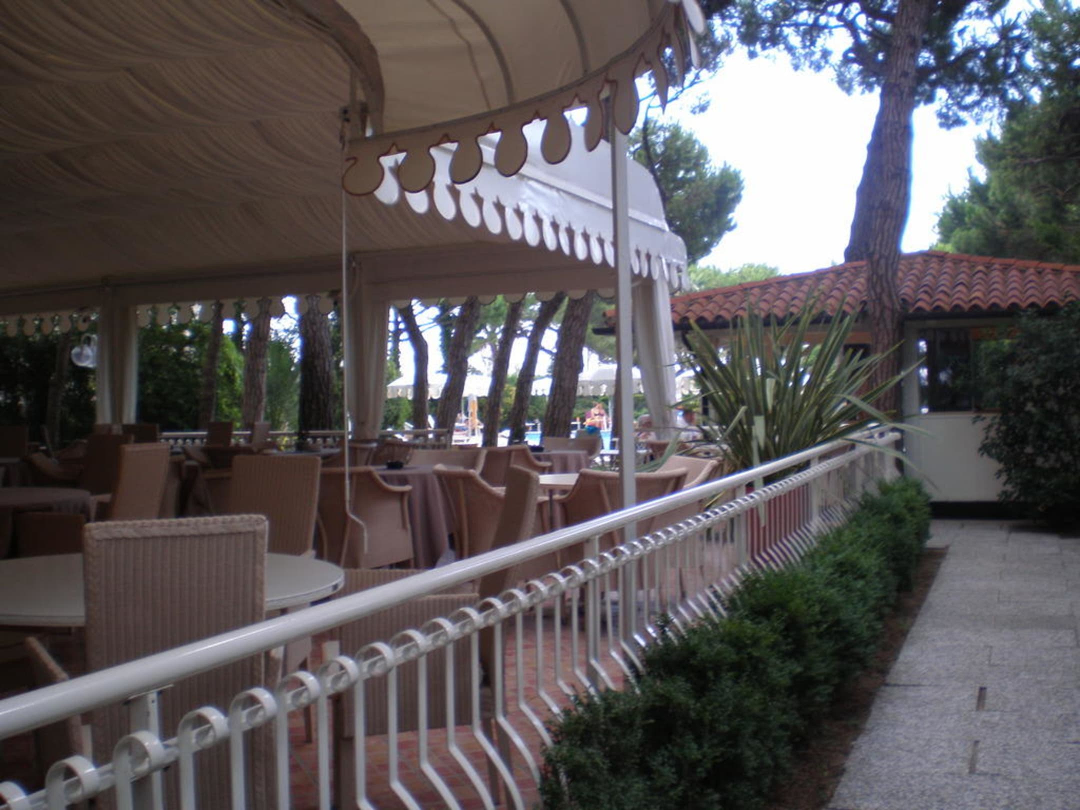 Blick zur Terrasse und zur Poolbar