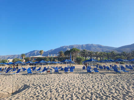 Hotelstrand mit Liegen unSchirmen. immer ausreichend Platz. Keine Reservierungen notwendig!