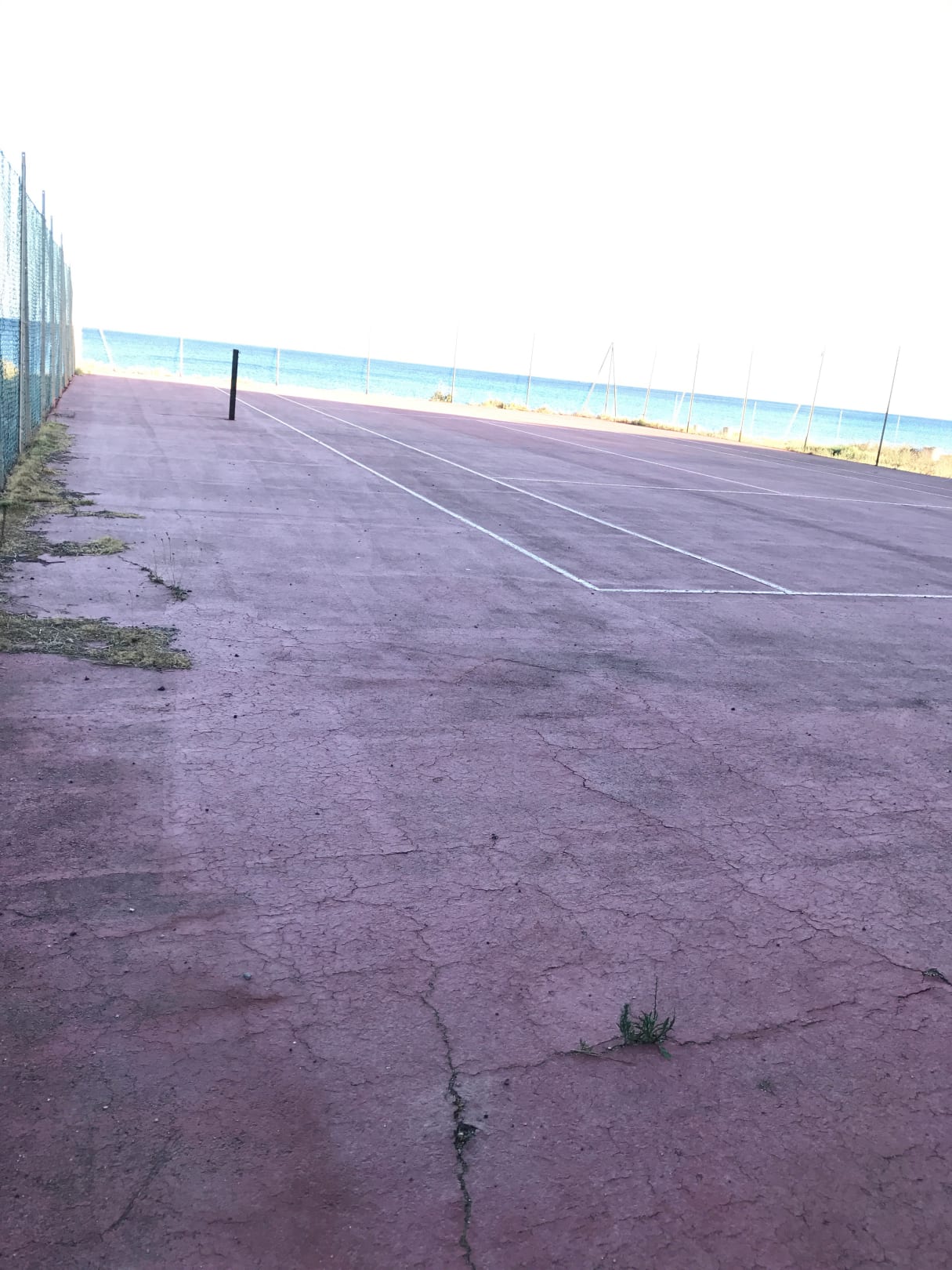 Tennisplatz jedoch ohne Netz und mit Unkraut