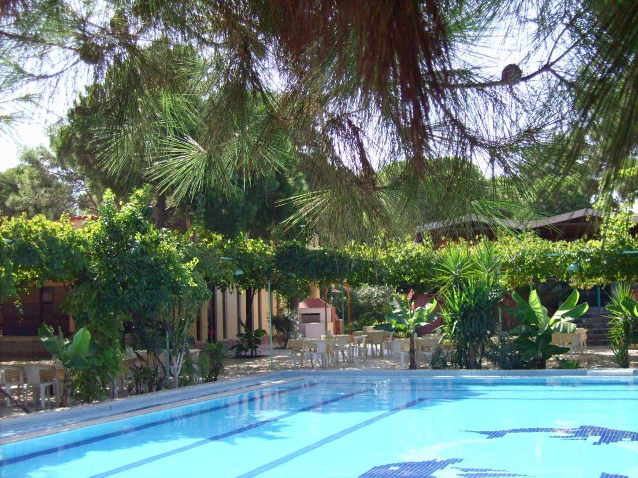 Pool mit Essbereich im Hintergrund