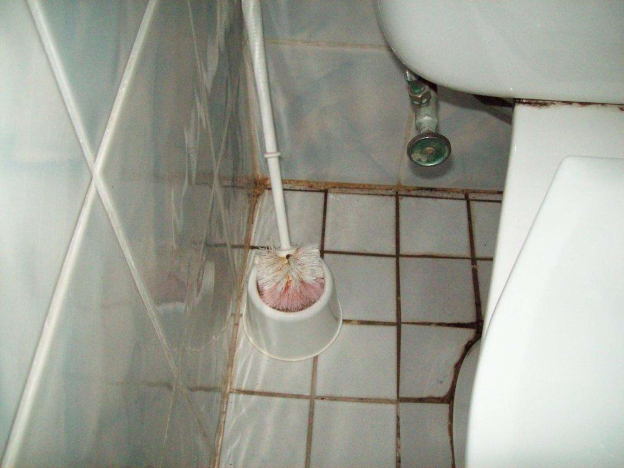 Toilettenbürste hatte schon Farbe gewechselt,Dreck und Schimmel,Raum 201