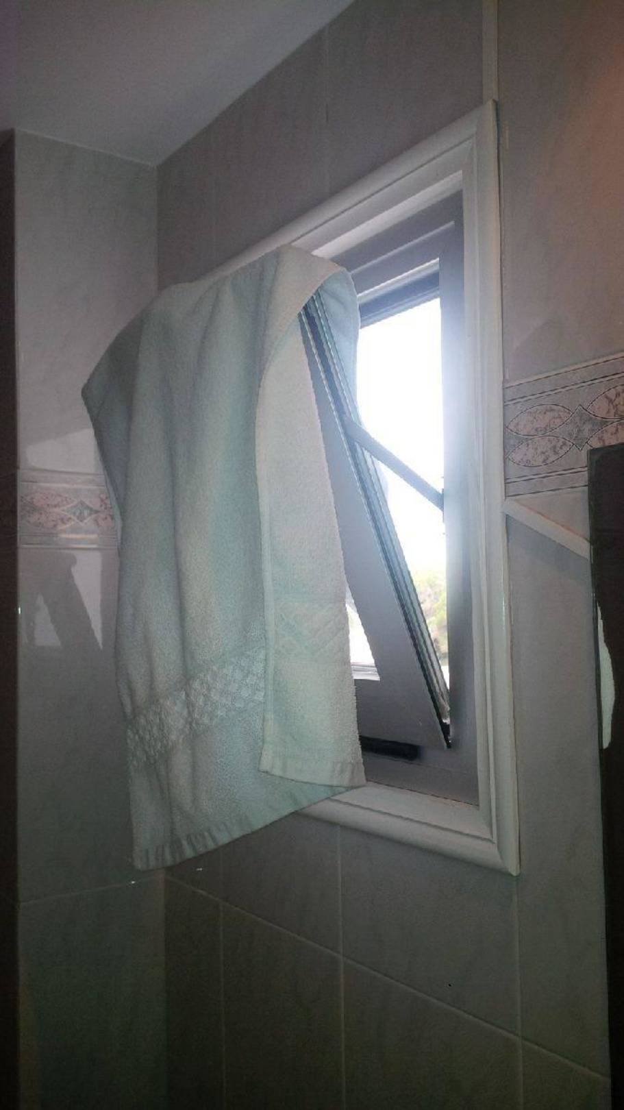 Badezimmer hat ein Fenster zum NACHBARBALKON