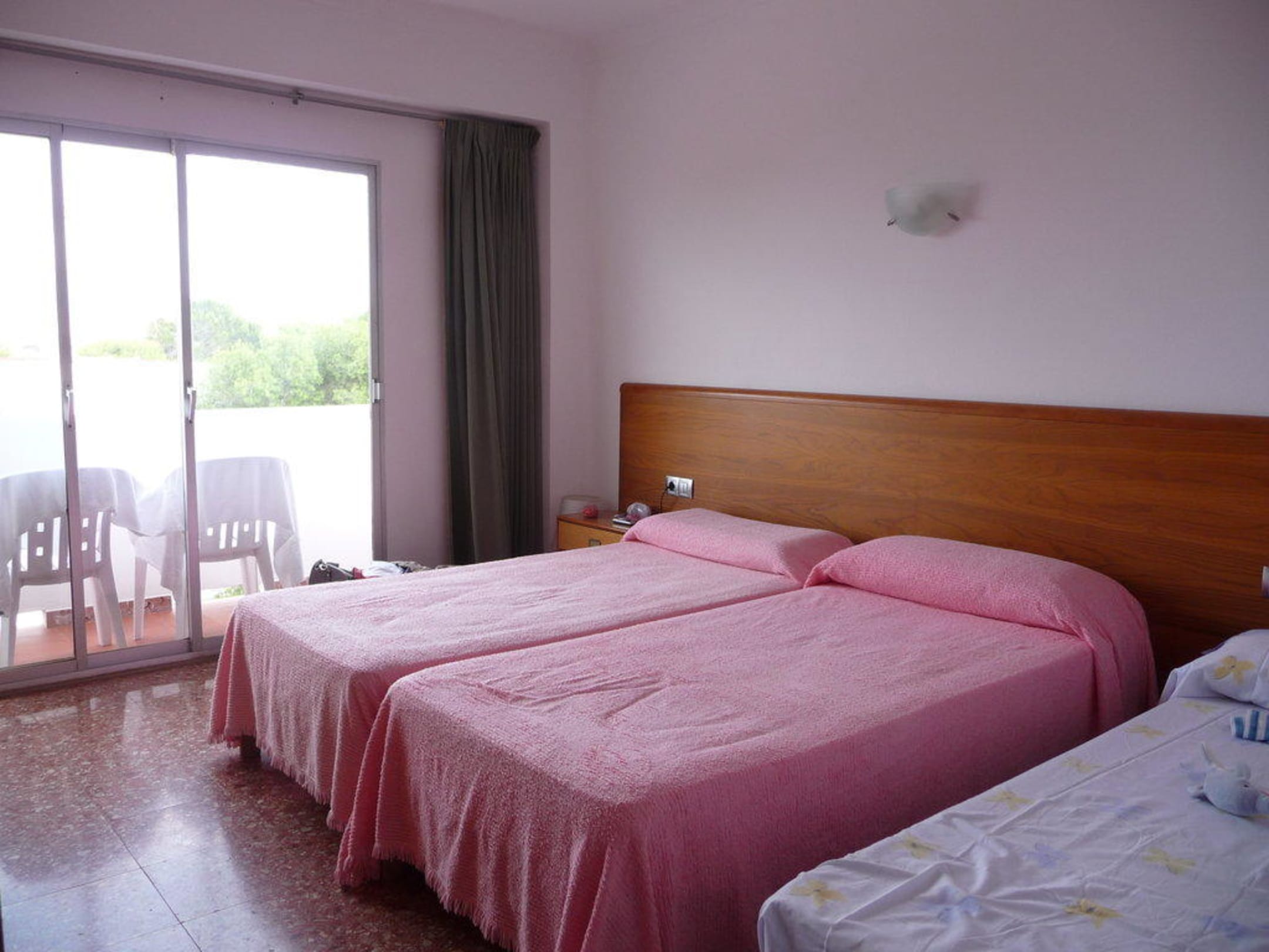 Wir waren zu fünft auf Formentera: vier Erwachsene und ein Kind. Hier ist das größere Schlafzimmer des Appartement zu sehen.