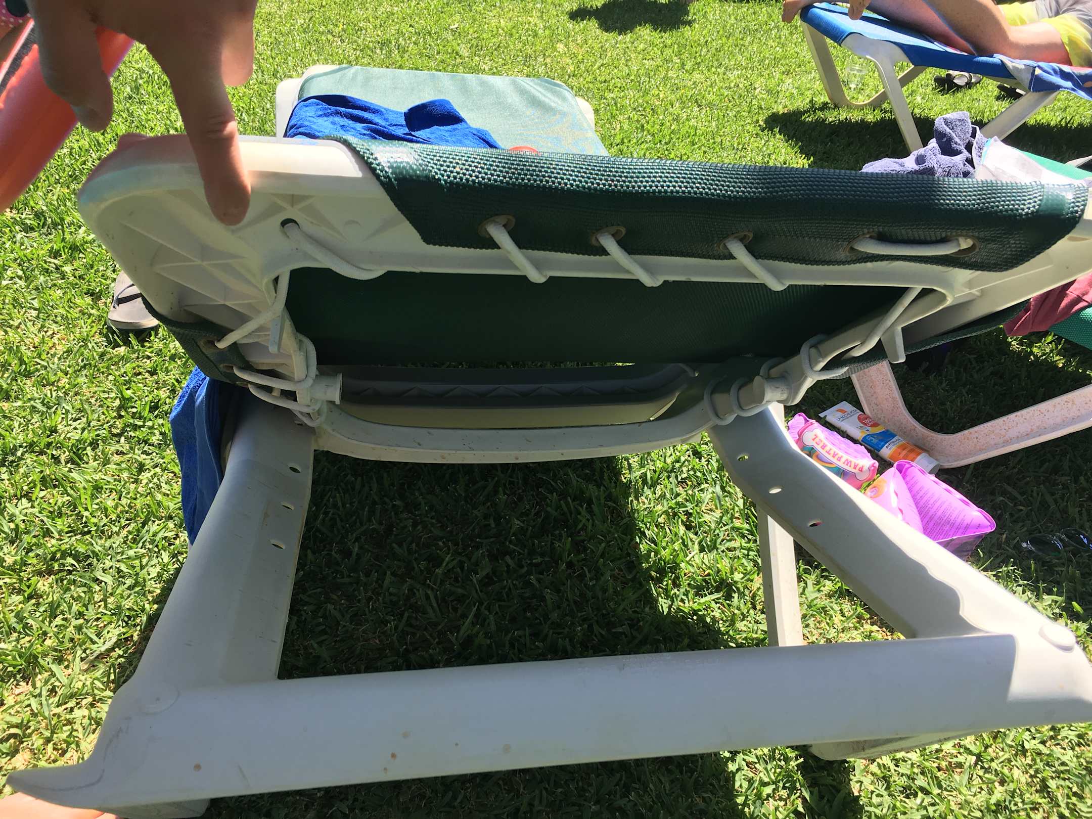 Kaputte und verdreckte Liegen am Pool