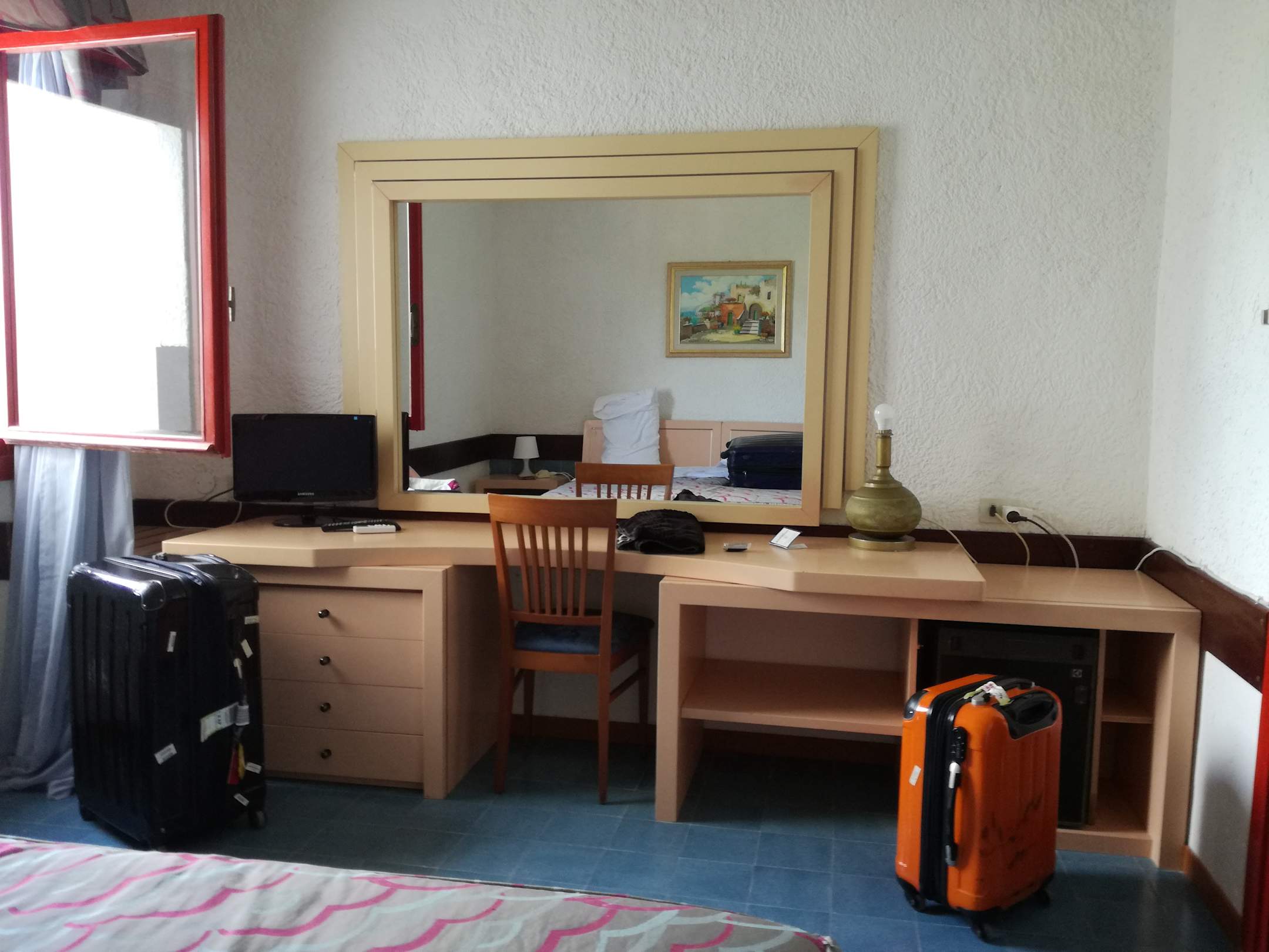Klimaanlage über der Eingangstür. Fenster Landesinnere.