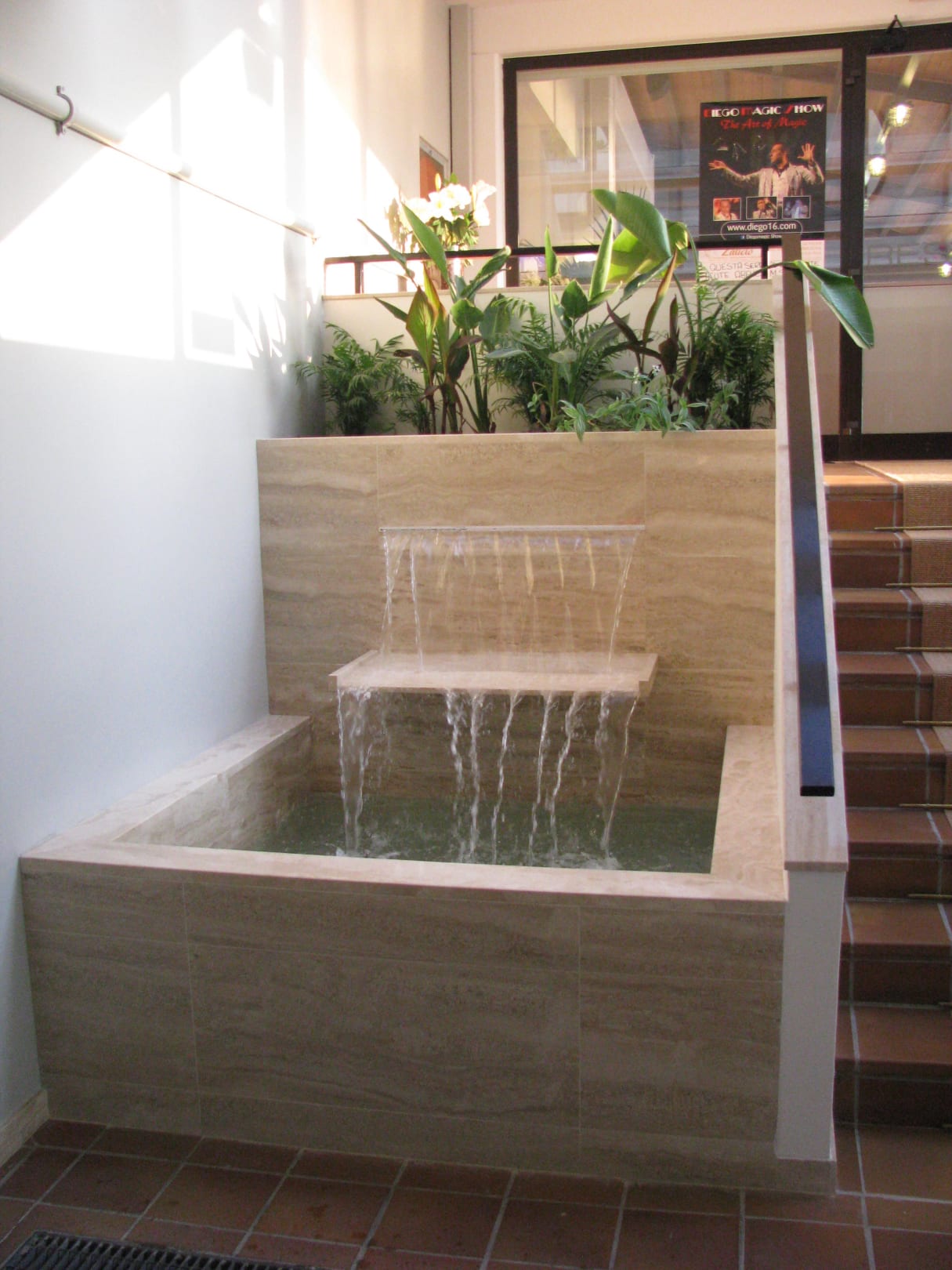 Brunnen neben Stiege zum Restaurant
