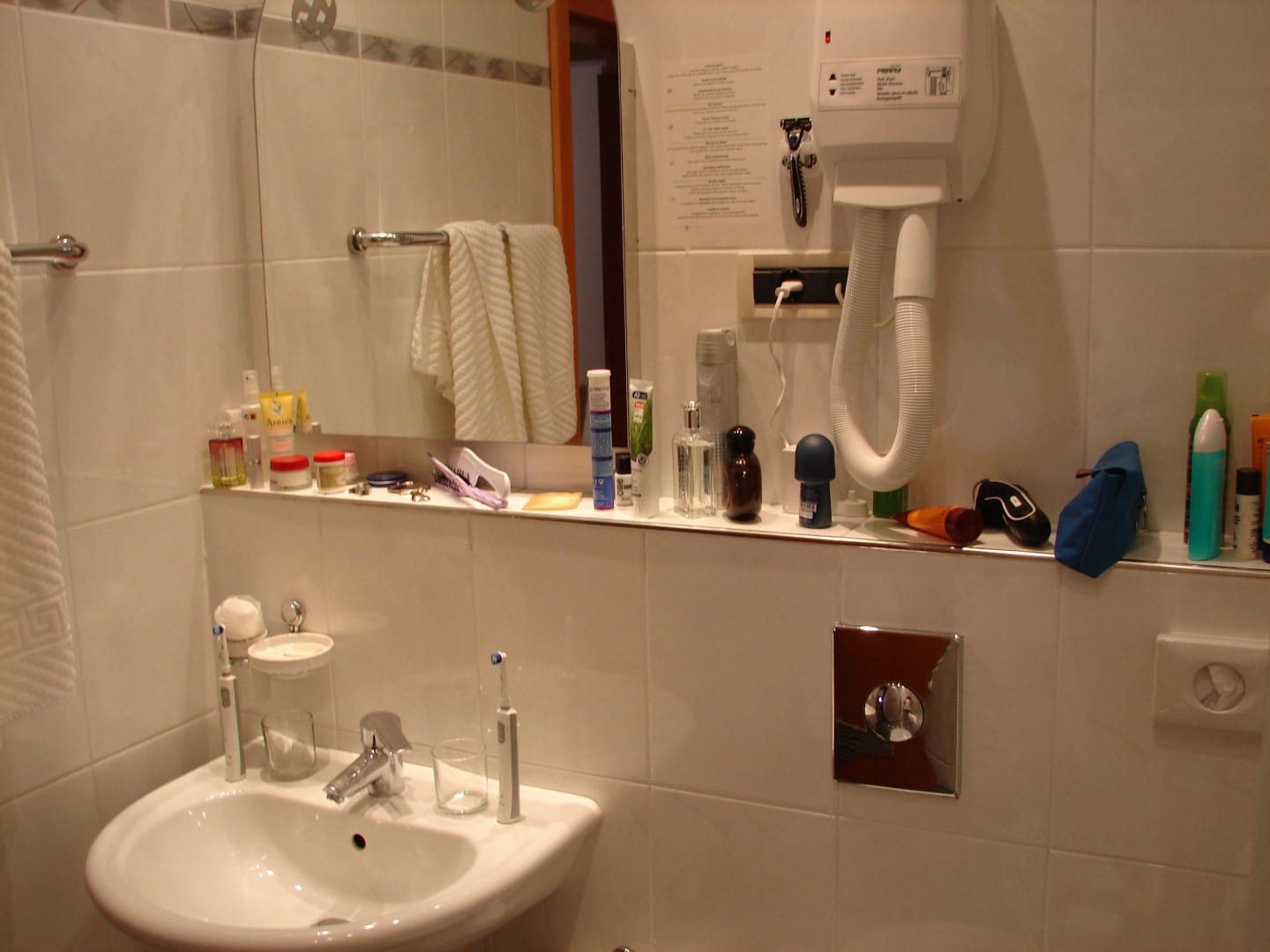 Ein großes Bad mit allen Notwendigkeiten der Hygiene.