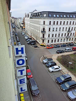 Ausblick aus Zimmer 365 seitlich aus dem Erker Richtung Karl-Liebknecht-Str.