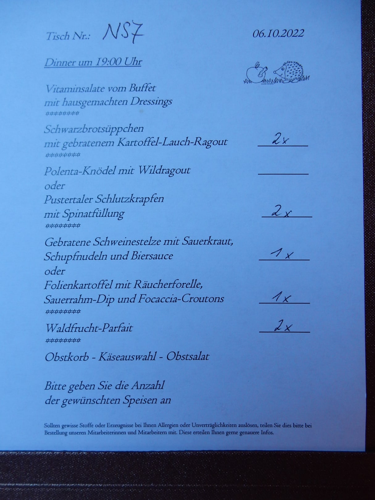 Speisekarte