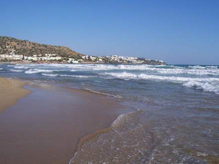 Der Strand liegt nur ca. 5 Gehminuten entfernt. 2 Liegen + Schirm + Tisch um 4€ pro Tag