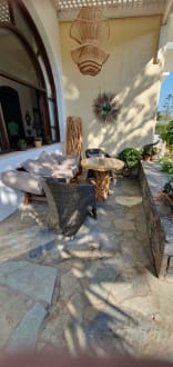 Eine Sitzecke vor dem Hotel