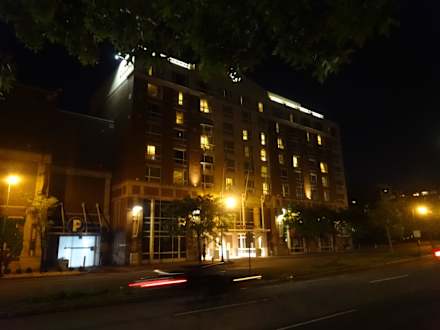Abendliche Straßenansicht aufs Hotel