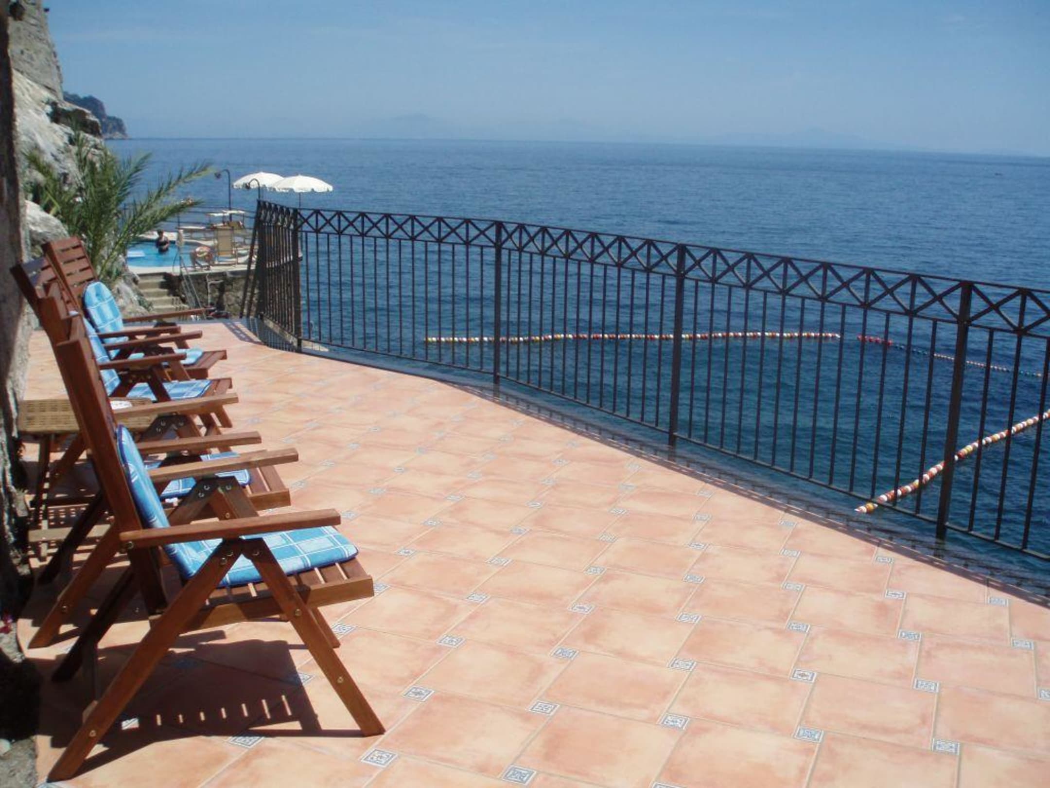 Terrasse am Weg zum Pool/Badeplateau- beides wird leider abends ca 19.30 Uhr abgeschlossen.