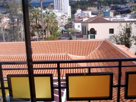Blick vom Zimmerbalkon über das Glasdach der Empfangshalle