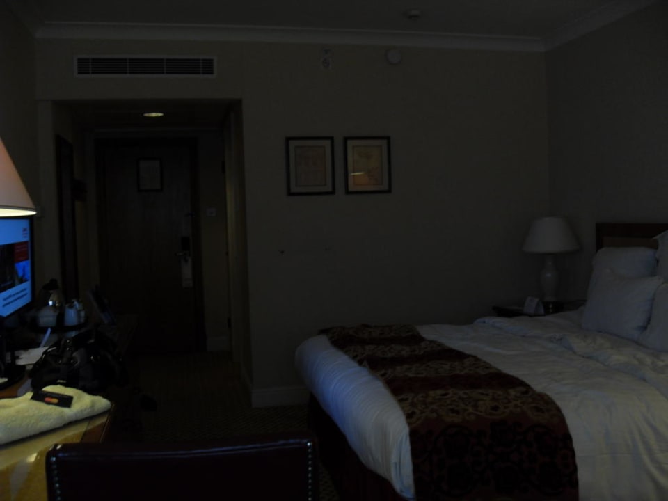 Bett war bequem, mit vielen Kissen, moderner Fernseher