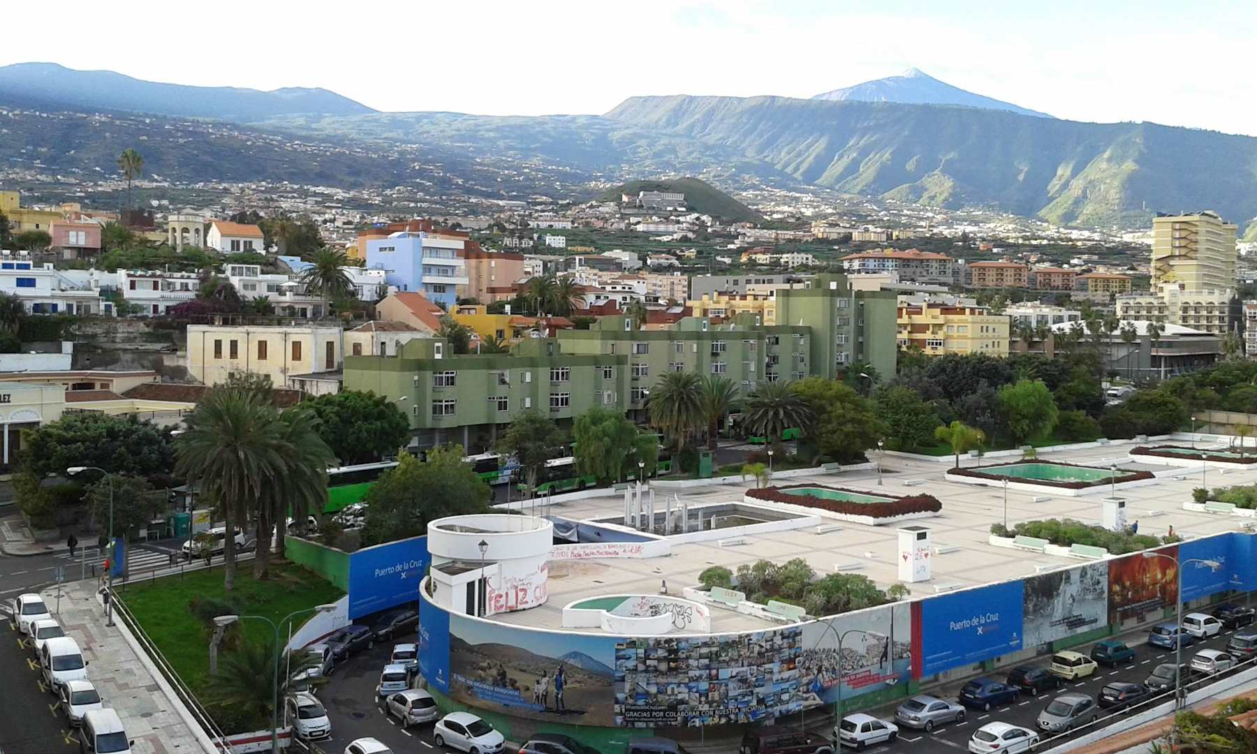 Blick von der Dachterrasse auf den Busbahnhof