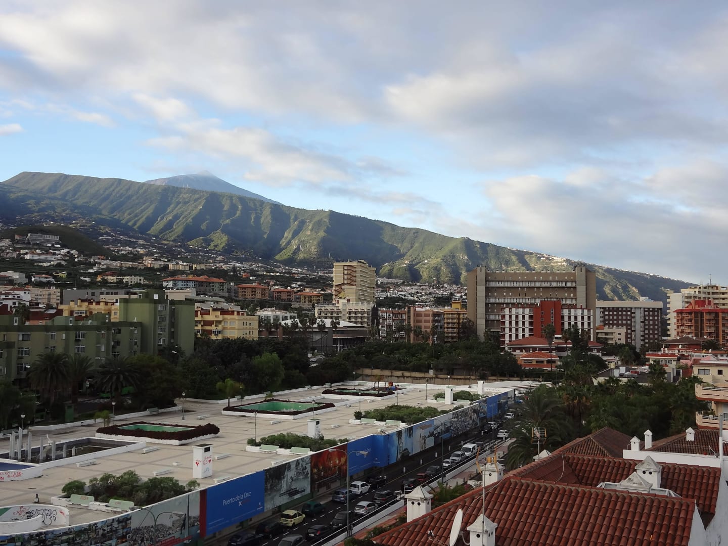 Blick von der Dachterrasse auf Busbahnhof und Teide