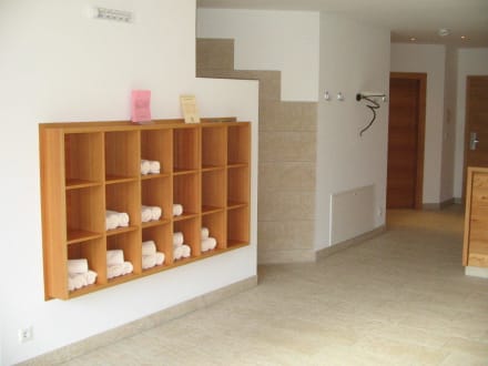 Wellnessbereich Zugang und Handtuchregal
