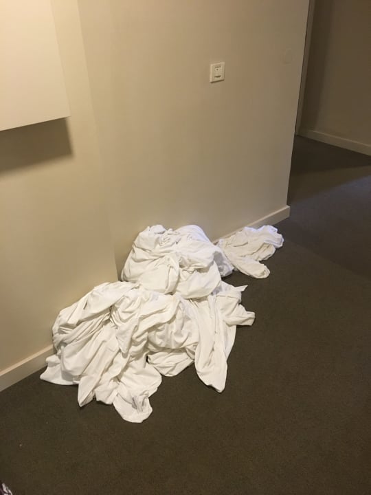 AusblickAusblick beim Rausgehen aus dem Zimmer, 3 Tage lang lag dreckige Bettwäsche mit Flecken vor der Tür. Sehr ekelhaft.
