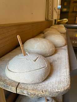 Das von den Kindern geformte Brot, bevor es in den Ofen kam.