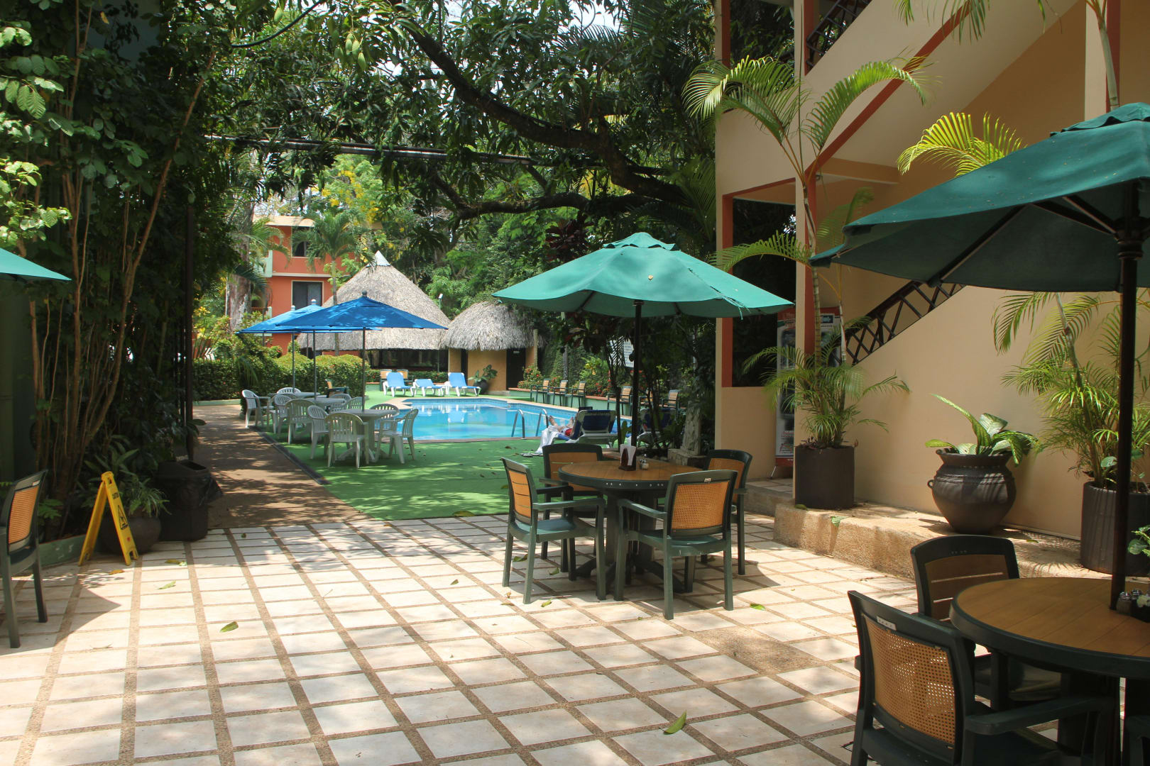 Blick von der Rezeption auf den kleinen Pool
