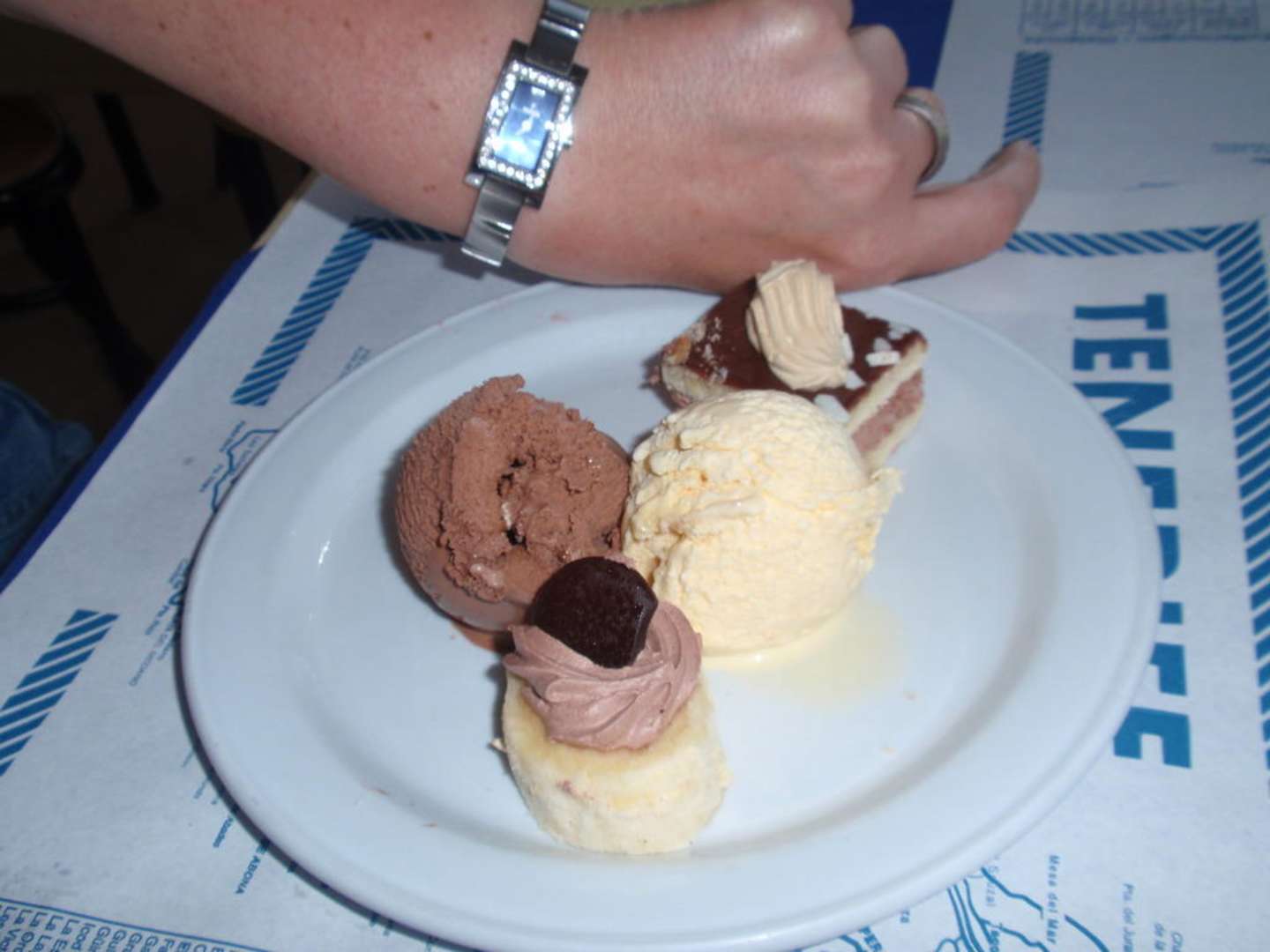 Törtchen und Eis als Nachtisch beim Abendessen