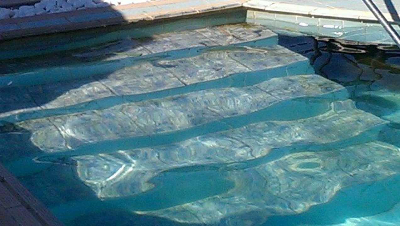 Schody do basenu z piachem i odłamanymi płytkami