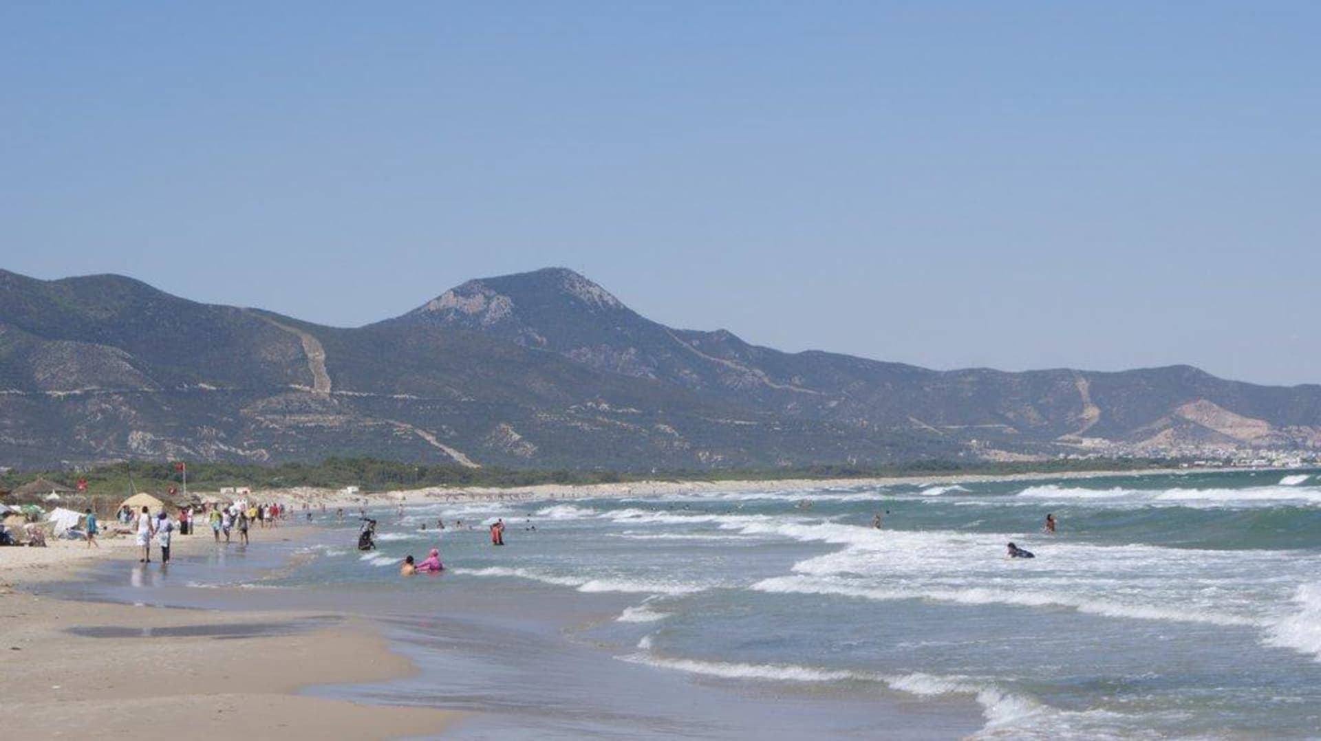 Plaża i góry Atlas w tle
