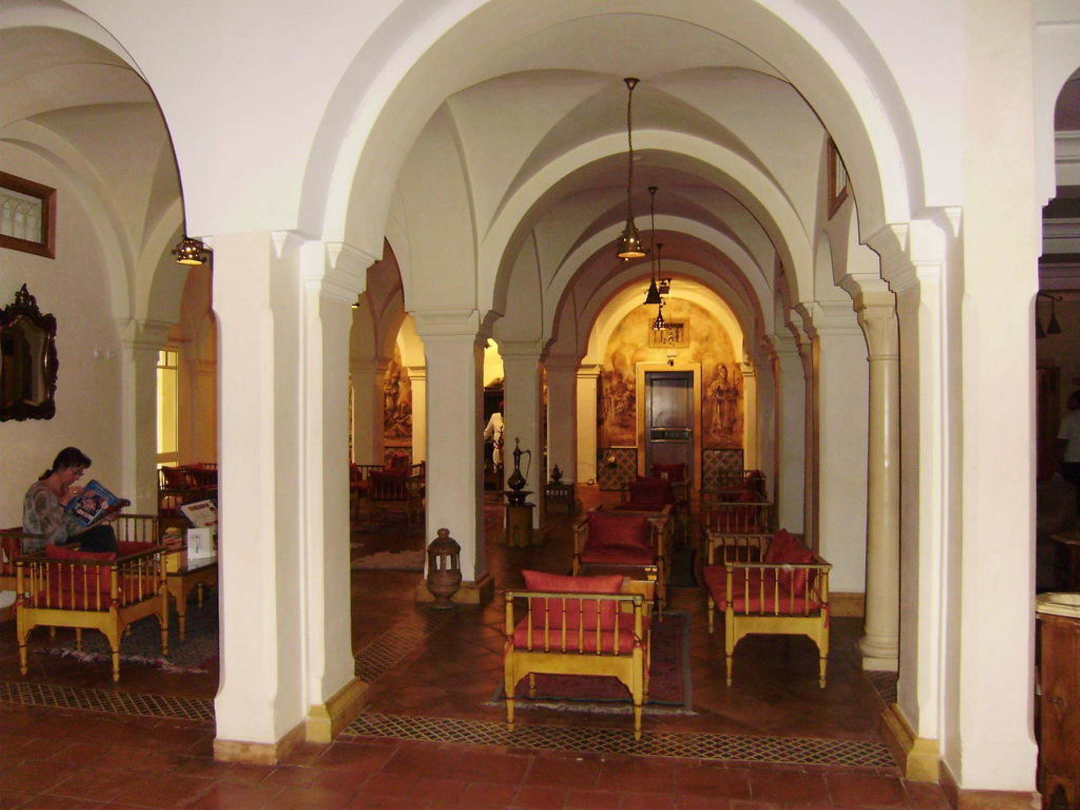Unmittelbar an der Empfangshalle schließt sich das Maurische Cafe an.Hier kann man Kaffee und Tee trinken sowie Wasserpfeife rauchen.Die Pfeife bekommt man da.