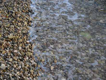Kiesstrand direkt vorm Hotel