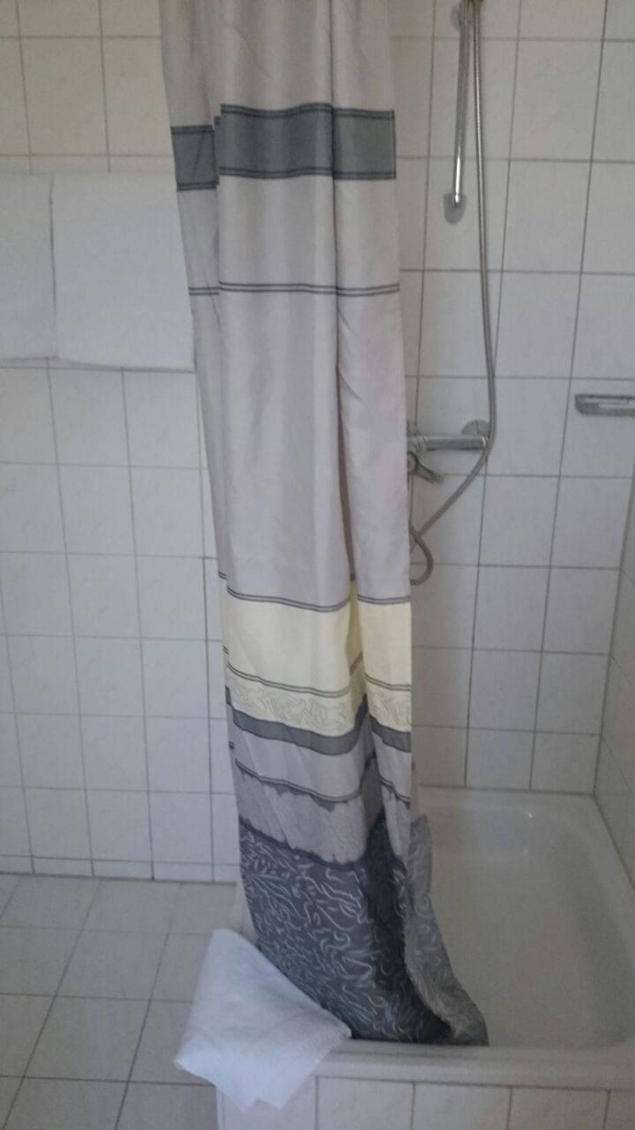 Kleine Duschzelle mit Vorhang