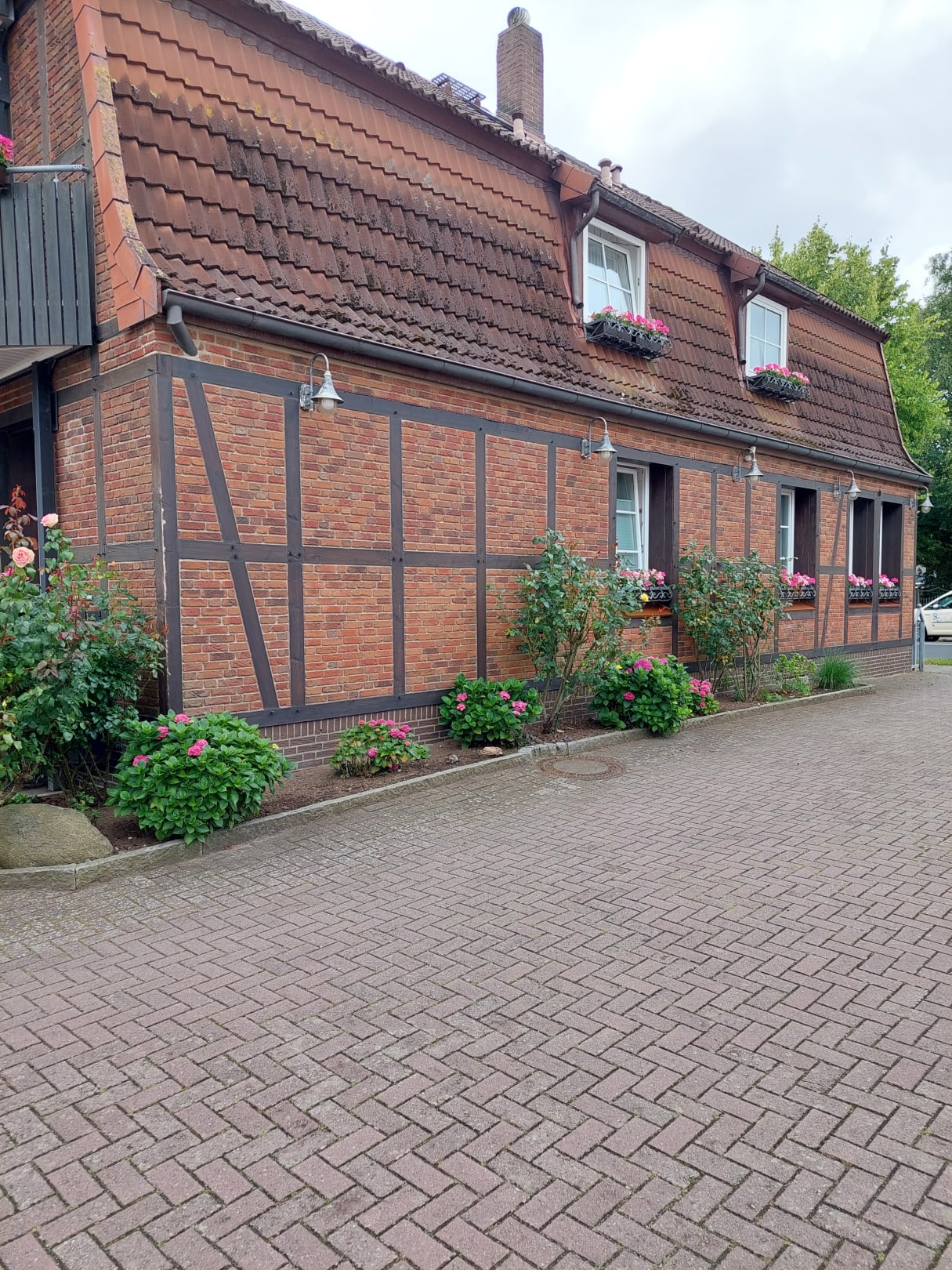 Das sind die drei unteren Zimmer. Blick vom Parkplatz aus.