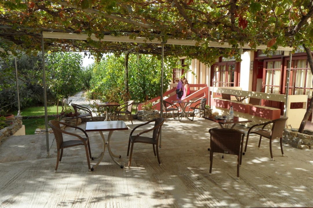 Hier haben wir draußen gefrühstückt, an sich sehr schön, hier allerdings das Dach aus "Grünzeug" etwas erdrückend und immer wieder gerne Besuch von Fliegen.