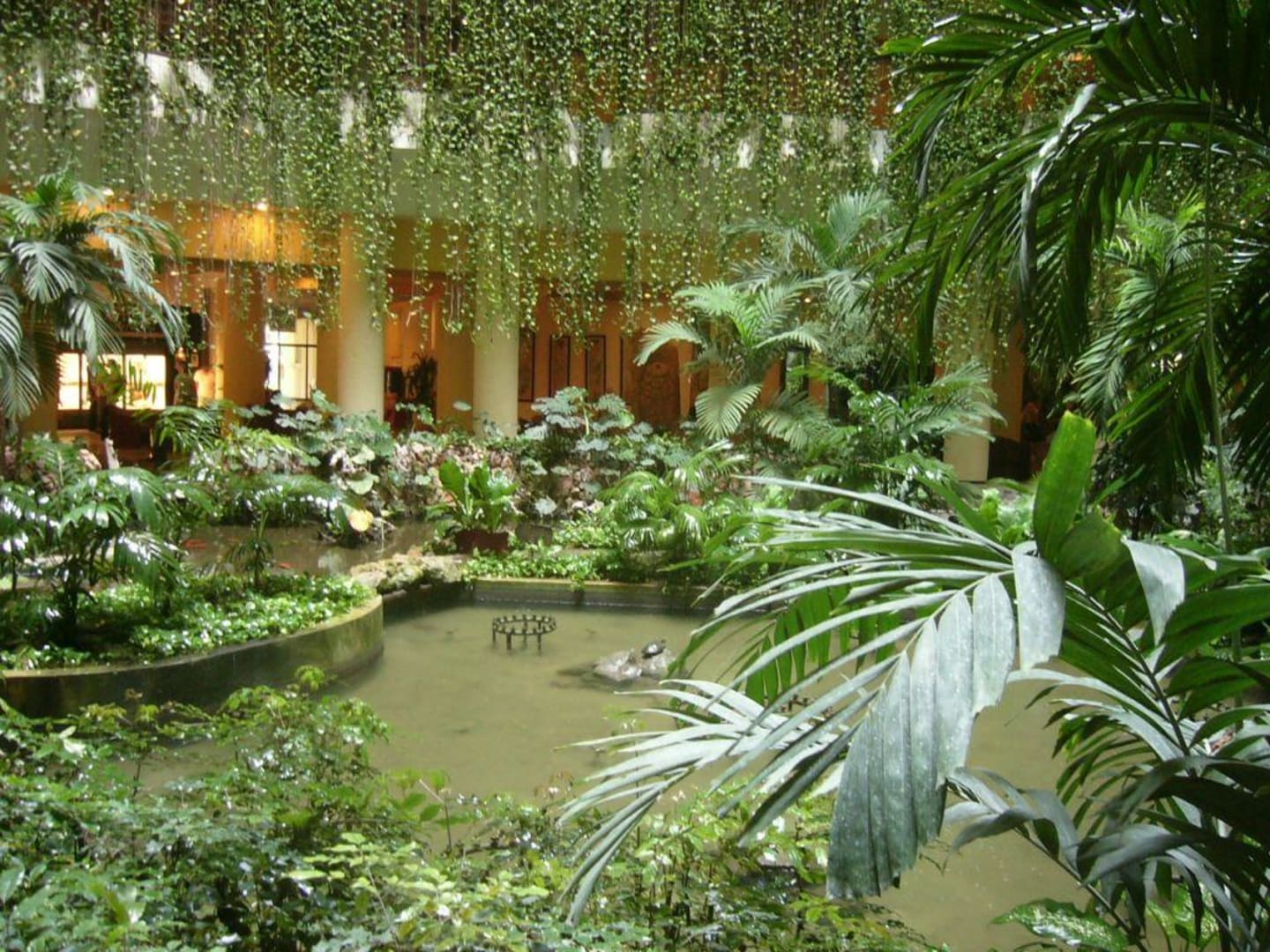 Im Innenhof wunderschöner Garten, mit Wasser und Papageien