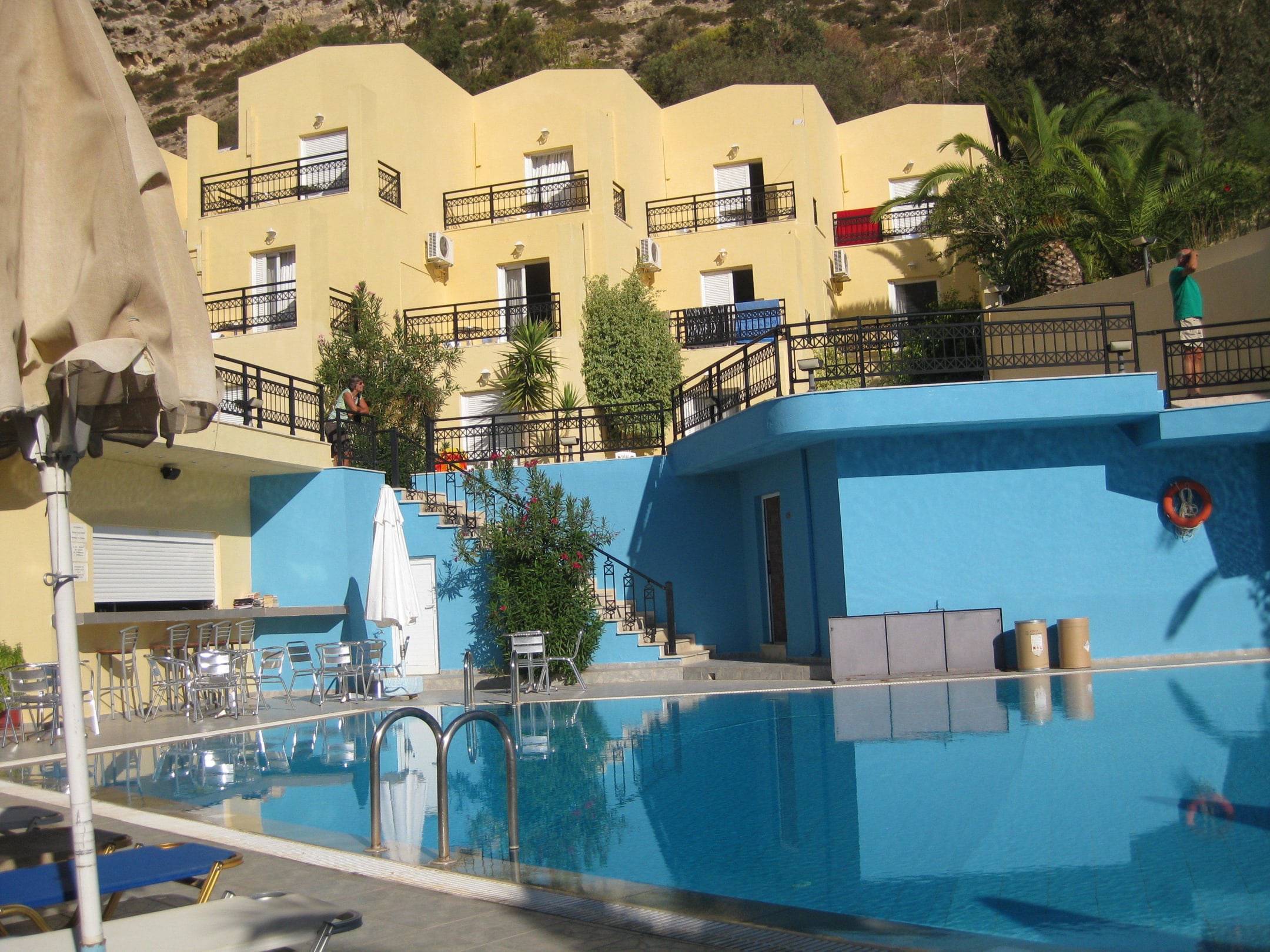 Pool dahinter Zimmer