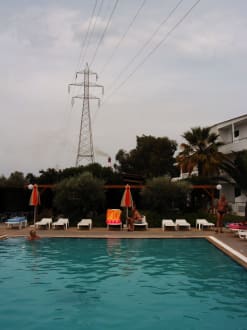 Über dem Pool verläuft eine Hochspannungsleitung, diese passt aber gut ins Bild, da neben dem Hotel noch zwei Hochspannungs Trassen verlaufen.