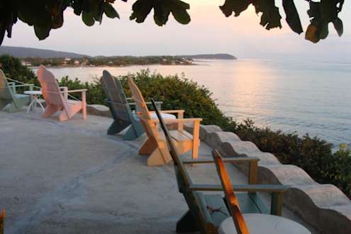 dies ist die Terasse mit atemberaubendem Ausblick, die Stühle sind sehr gemütlich um mit einem sehr leckeren Rumpunsch den Sonnenuntergang und die Sterne zu genießen den gleichen Blick hat man von den Zimmern