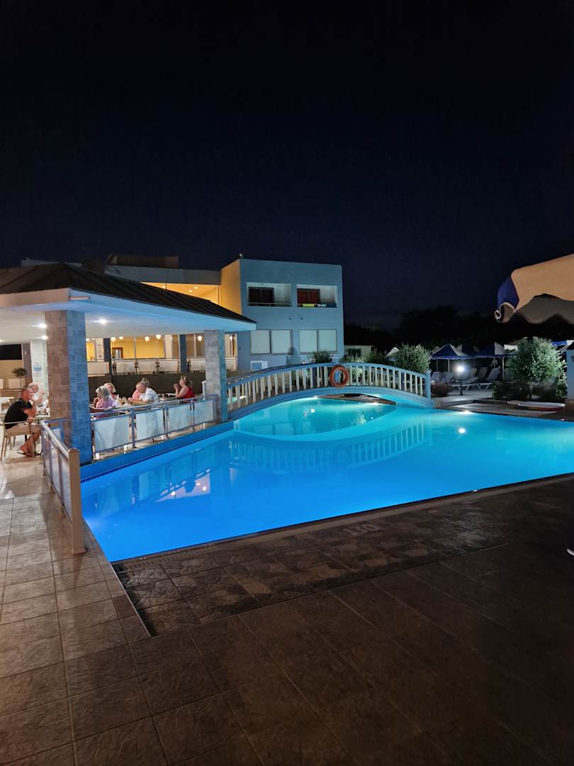 Beleuchteter Pool am Abend